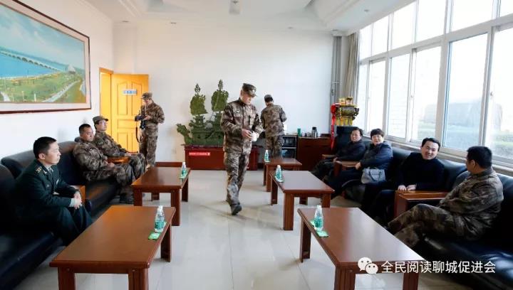 我市深入贯彻落实党的十八大、十九大精神,贯彻落实党中央、省、市关于开展全民阅读活动、建设书香社会的部署,坚持政府主导、社会力量共同参与,倡导全民阅读,建设书香聊城。市委宣传部、市文明办、市文广新局、市教育局、市总工会、团市委、市关工委、市妇联连续三年联合发出全民阅读倡议,激发全民阅读热情;聊城市文化创意产业协会承办策划“同读一本好书”首届2017书香聊城全民阅读系列活动最为重要活动之一是七进工程,其中包括进军营,希望通过全民阅读进军营工程实现文化拥军,助推书香军营建设,我们此行在于全面了解相关情况,为后期相关工作的开展做好充足的准备。
